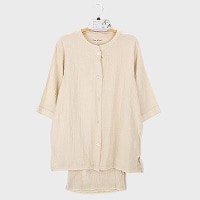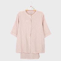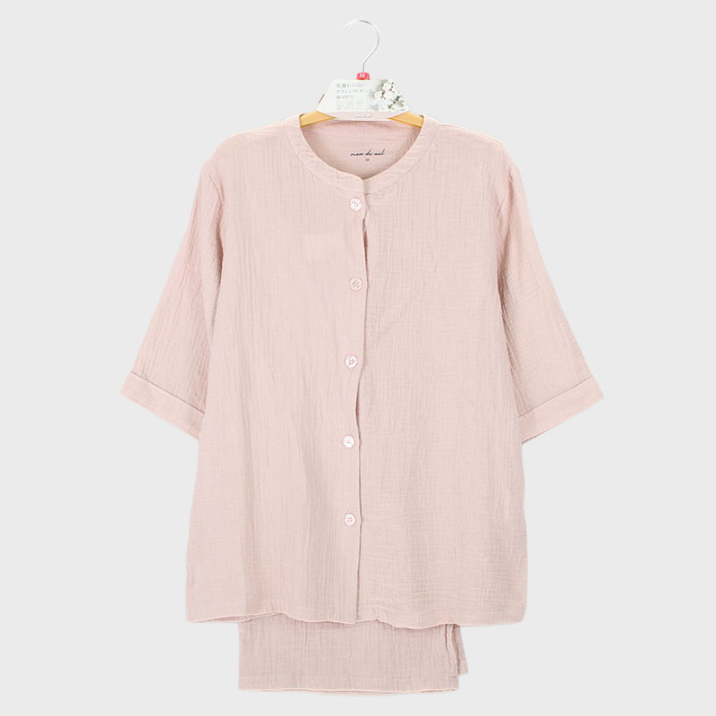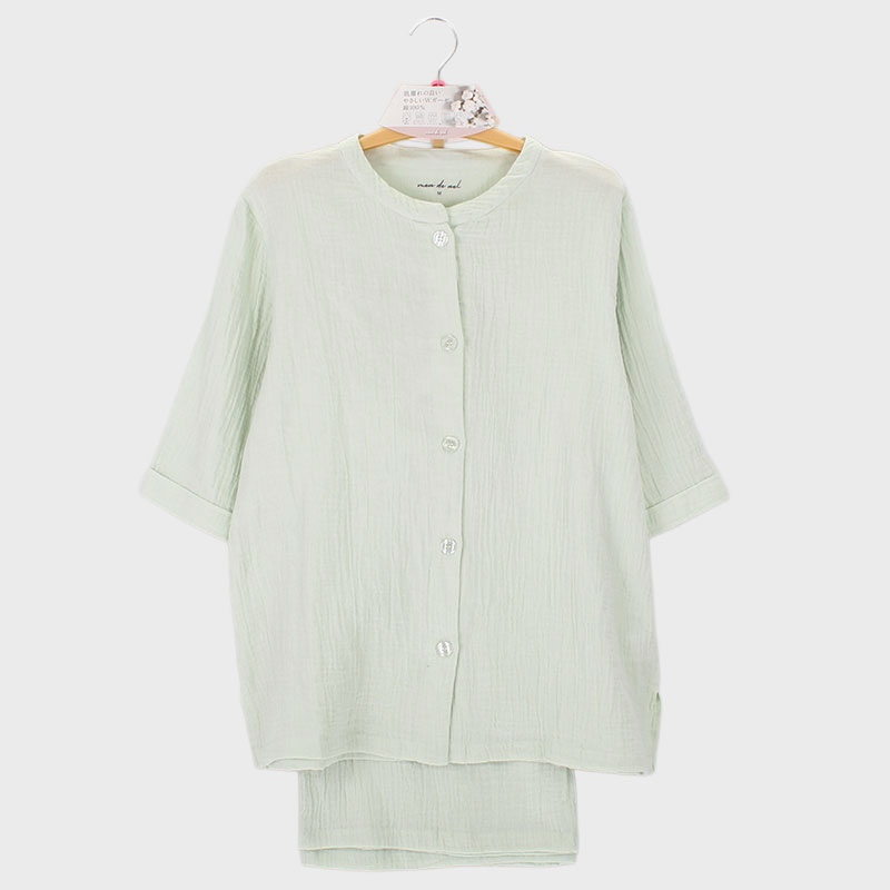 婦人『men de nel』ガーゼ衿無し7分袖パジャマ(無地)