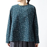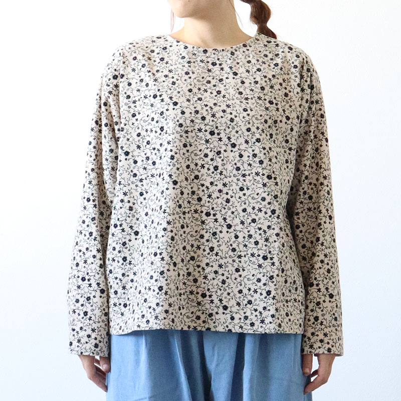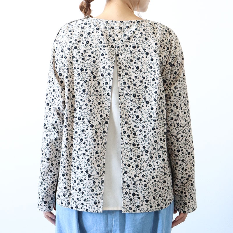 婦人『cloudnine』コーデュロイ小花柄プリント後ろレイヤード風左肩ボタンあきブラウス