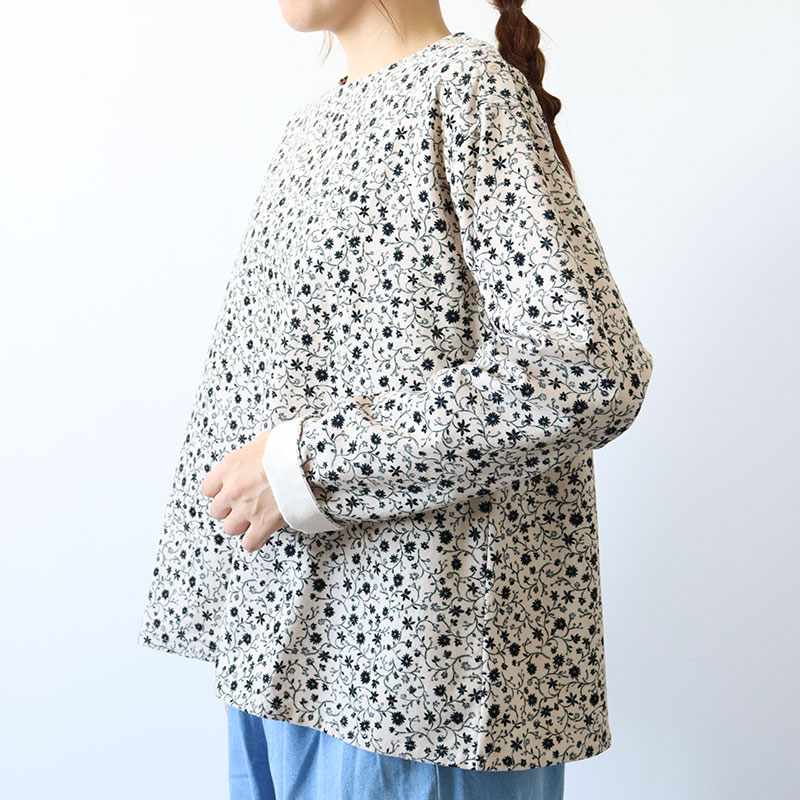 大西衣料(株)が運営する、【公式】卸・仕入れサイト『SELF WEB SHOP』で 婦人『cloudnine』コーデュロイ小花柄プリント後ろレイヤード風左肩ボタンあきブラウス をお仕入れ!