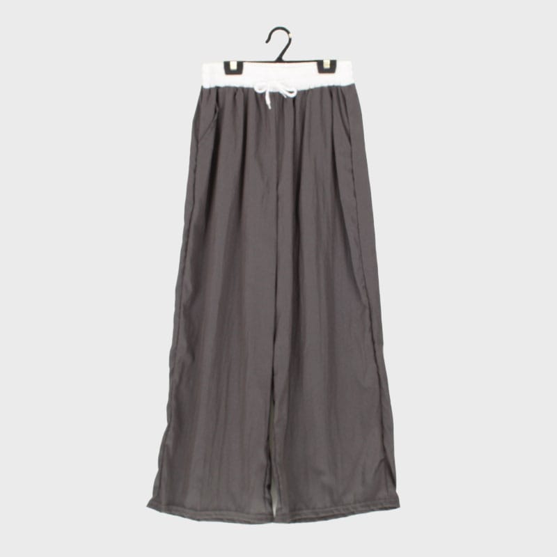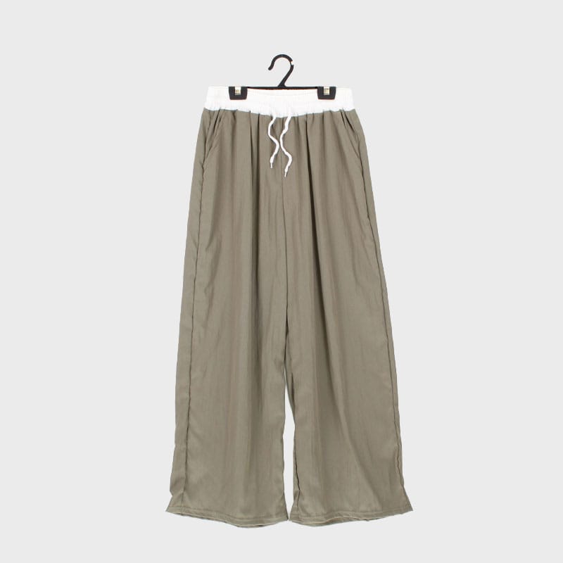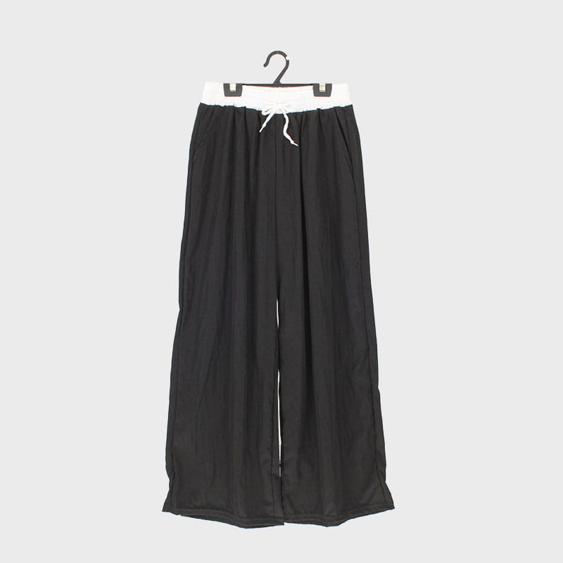 婦人ウエスト切替ナイロンワイドパンツ