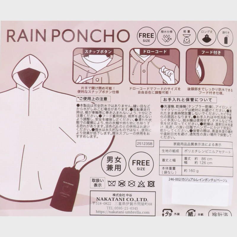 男女兼用『レインポンチョ』カジュアルレインポンチョ『撥水仕様』