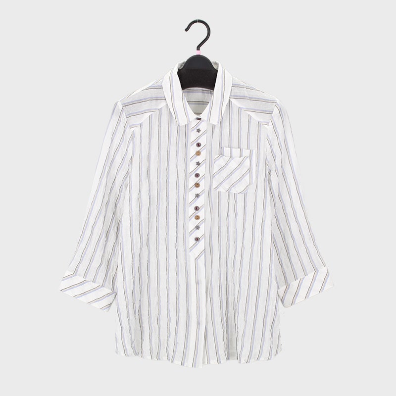 大西衣料(株)が運営する、【公式】卸・仕入れサイト『SELF WEB SHOP』で 婦人7分袖マルチストライプブラウス をお仕入れ!