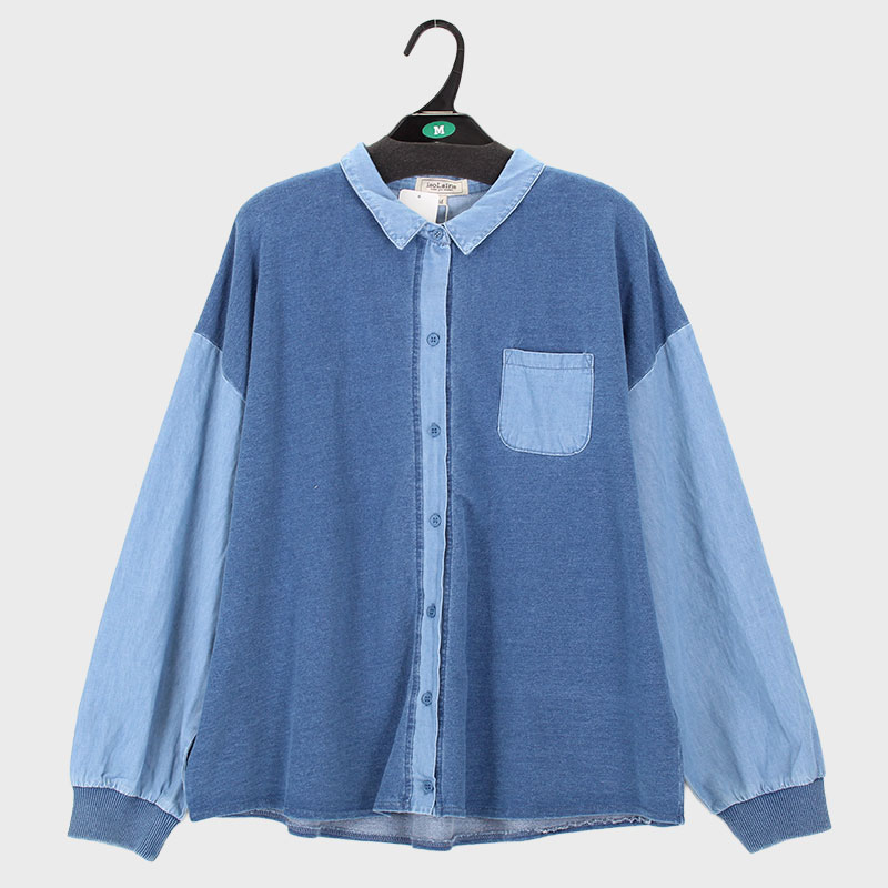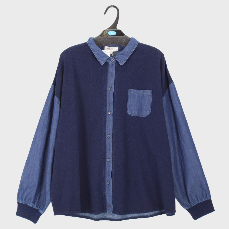 大西衣料(株)が運営する、【公式】卸・仕入れサイト『SELF WEB SHOP』で 婦人『isoLaine』インディゴ染めミニ裏毛デニム切替シャツ をお仕入れ!