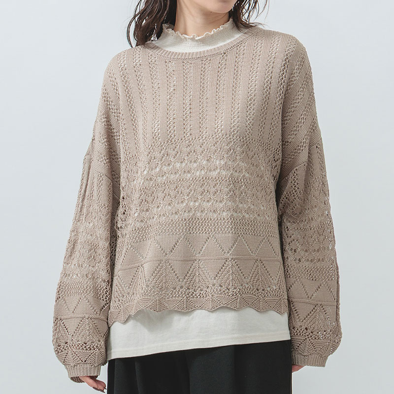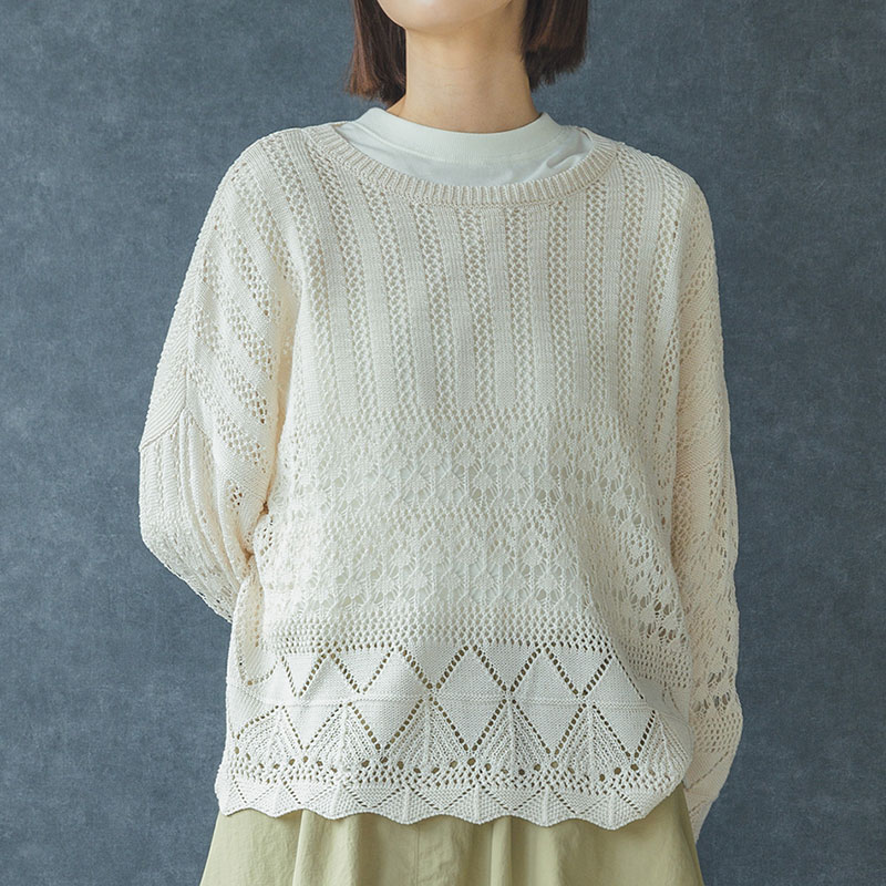 婦人『m.m.o.』透かし柄編みニットプルオーバー