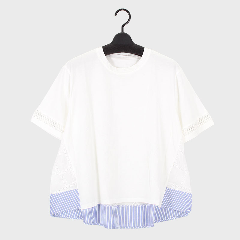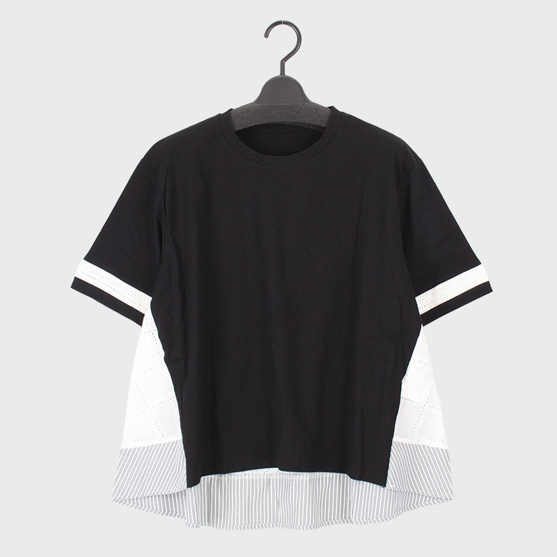 婦人半袖布帛使いデザインカットソー