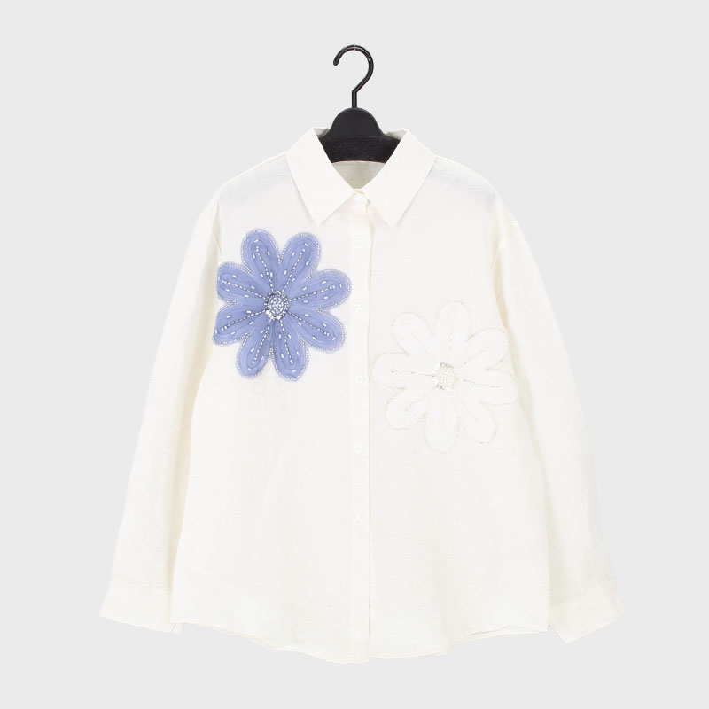 婦人長袖花モチーフブラウス