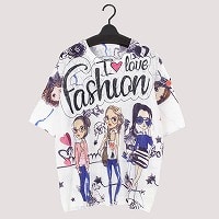 婦人半袖プリントセーター