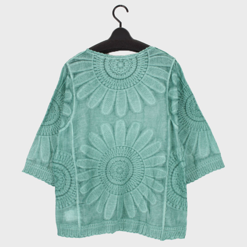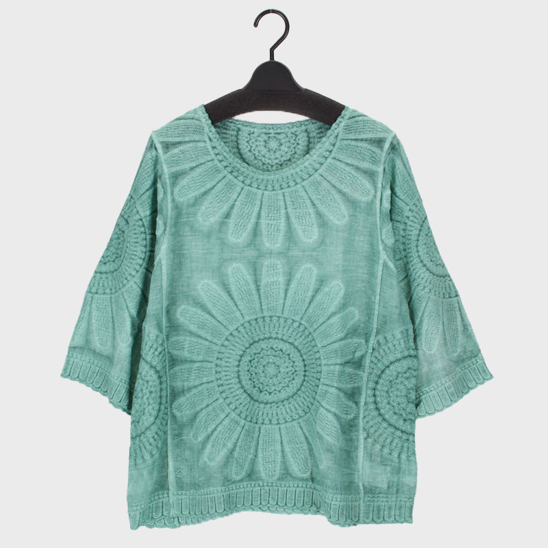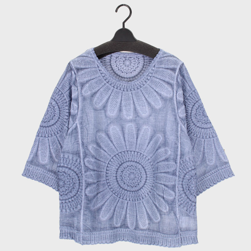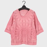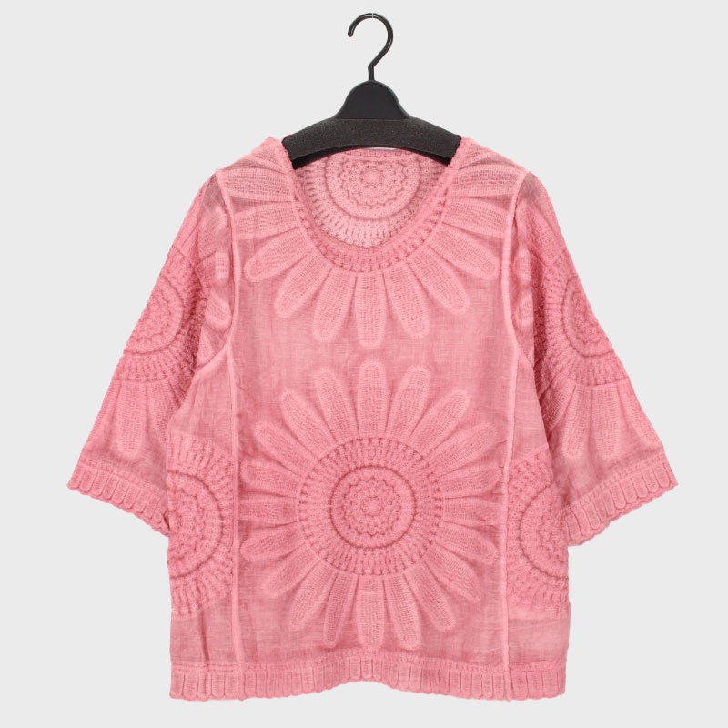 大西衣料(株)が運営する、【公式】卸・仕入れサイト『SELF WEB SHOP』で 婦人7分袖ひまわり柄製品染ブラウス をお仕入れ!
