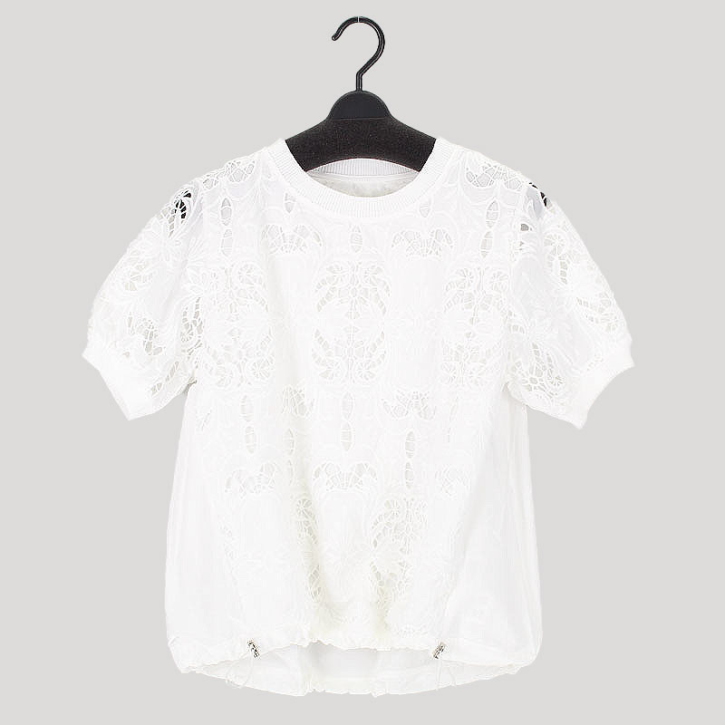 婦人半袖布帛使いデザインカットソー