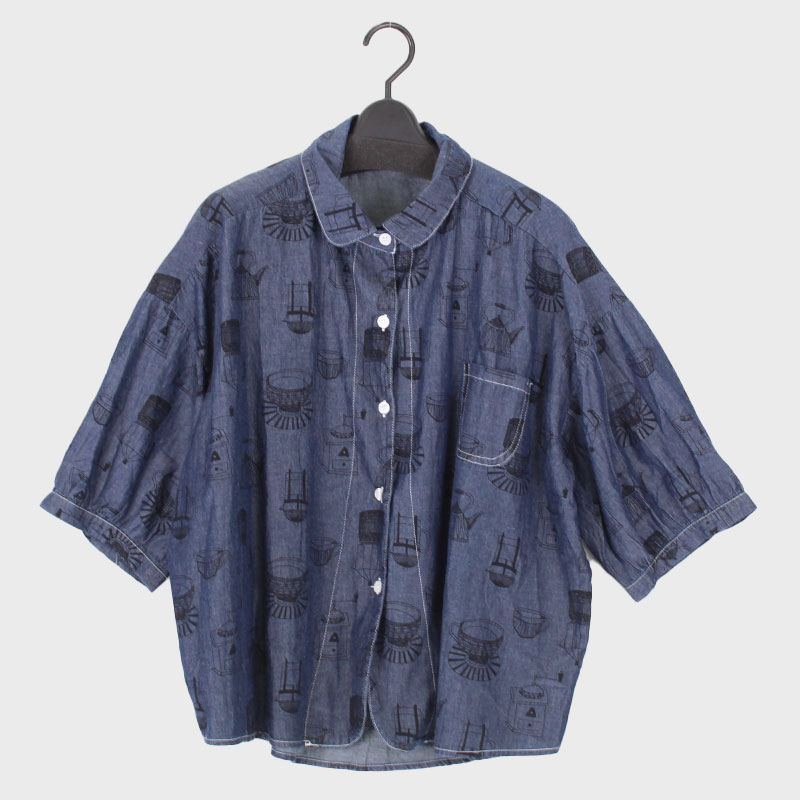 婦人半袖デニムデザインシャツ