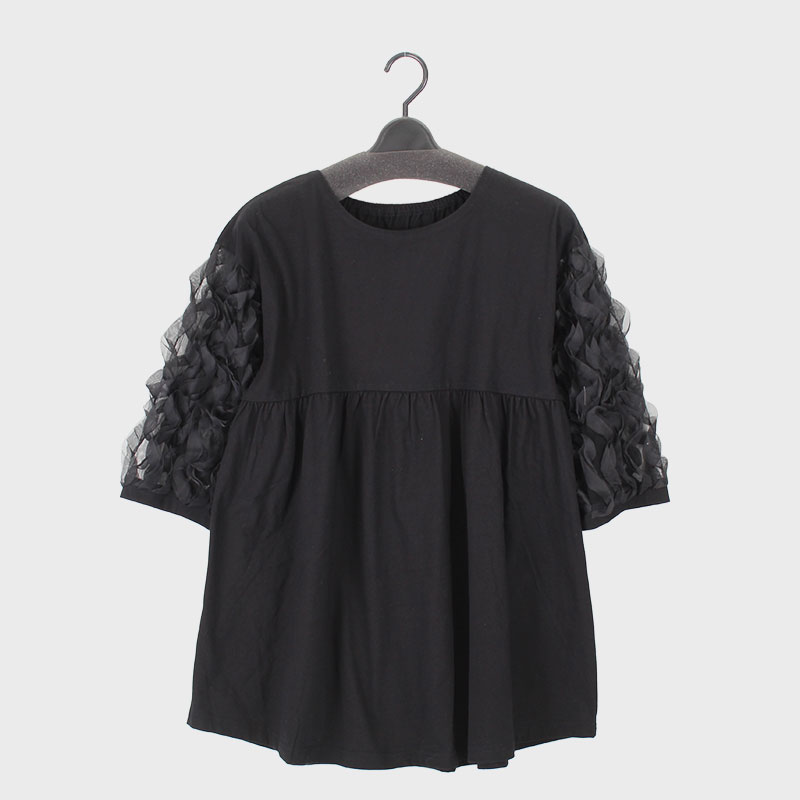 婦人7分袖袖フリルデザインチュニック