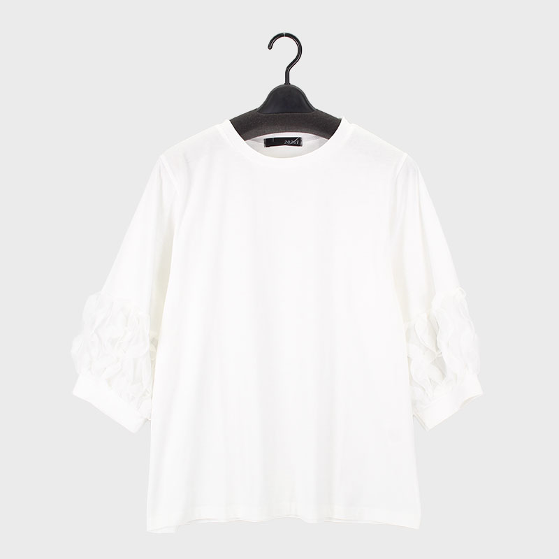 婦人7分袖袖フリルデザインカットソー