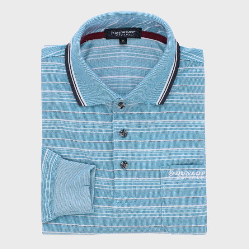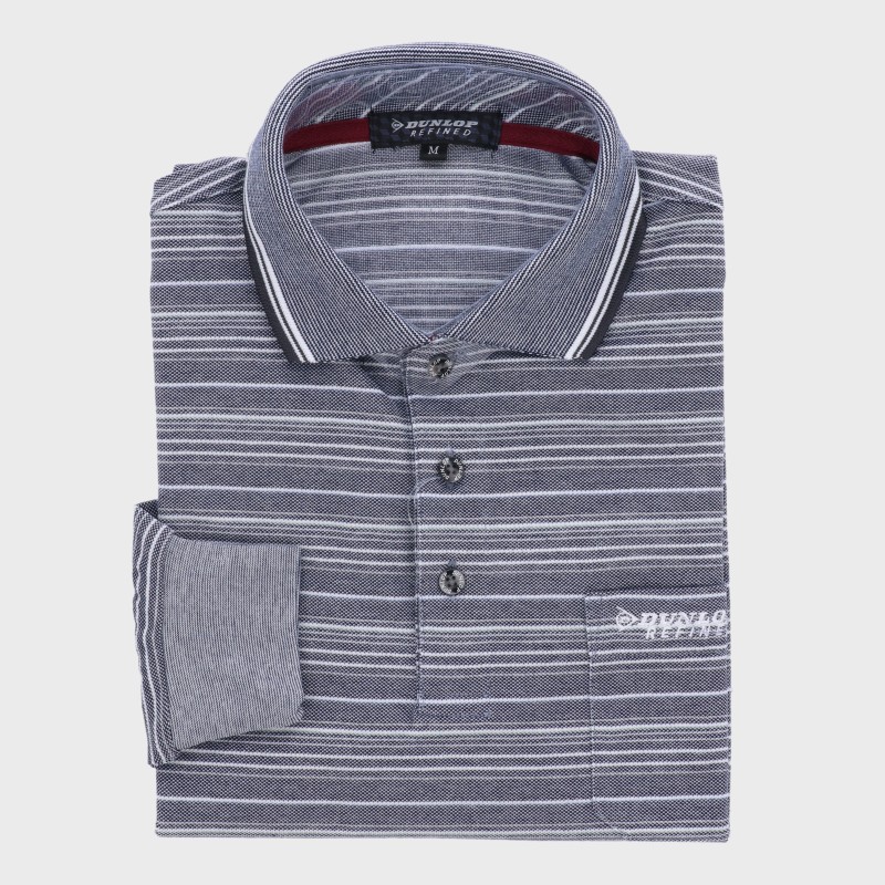 紳士大寸長袖鹿の子ボーダーポロシャツ『DUNLOP』