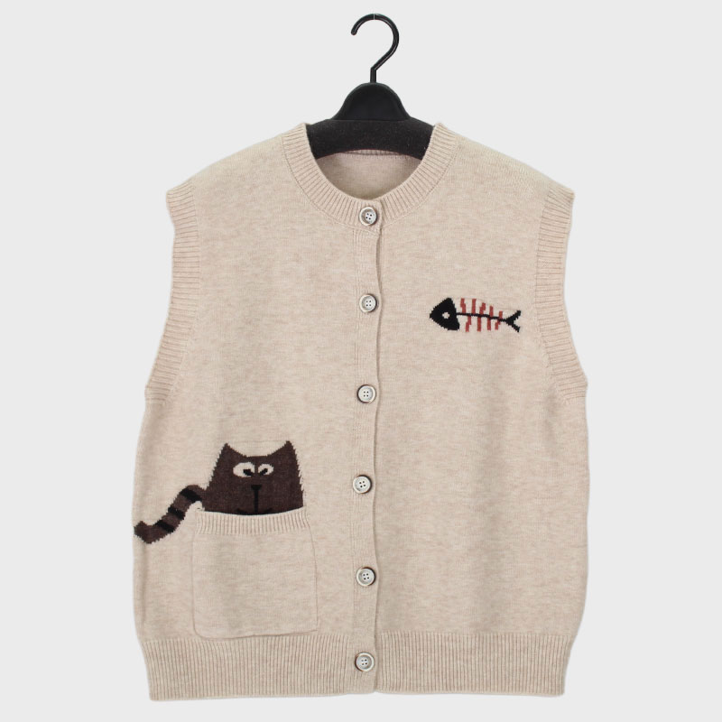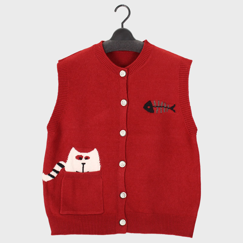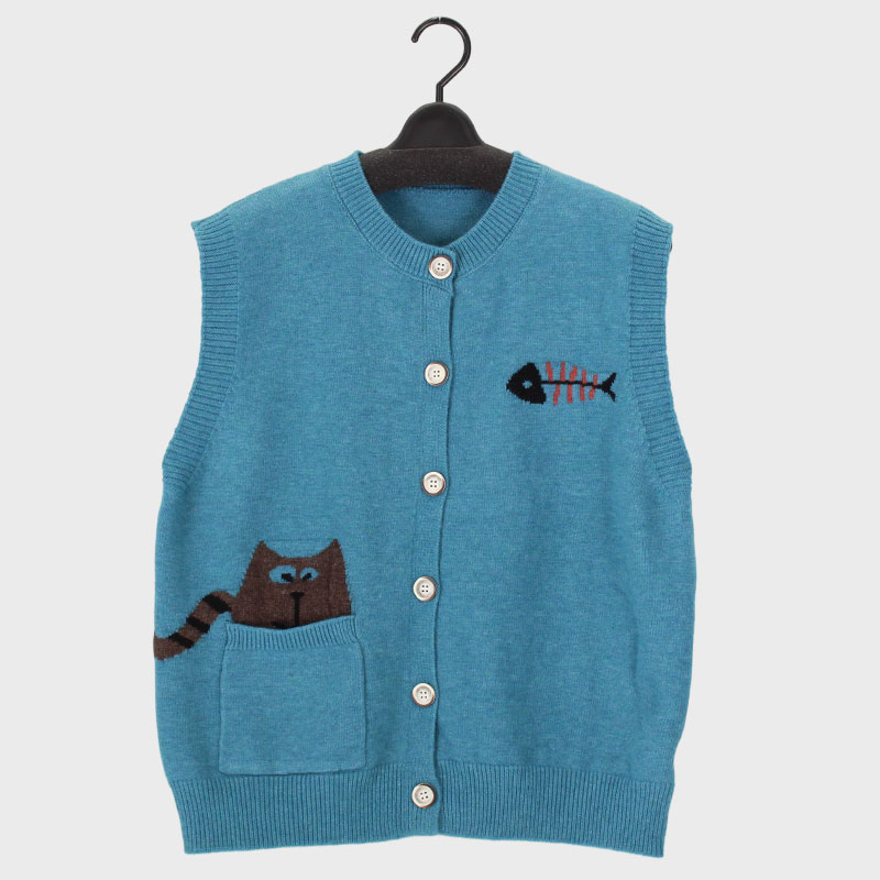 婦人前あきニットベスト(ネコ柄)