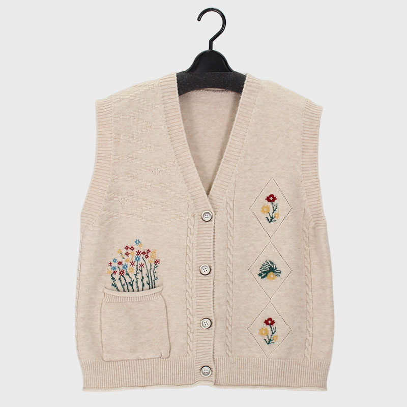 大西衣料(株)が運営する、【公式】卸・仕入れサイト『SELF WEB SHOP』で 婦人V首前あきニットベスト(花) をお仕入れ!