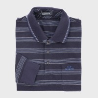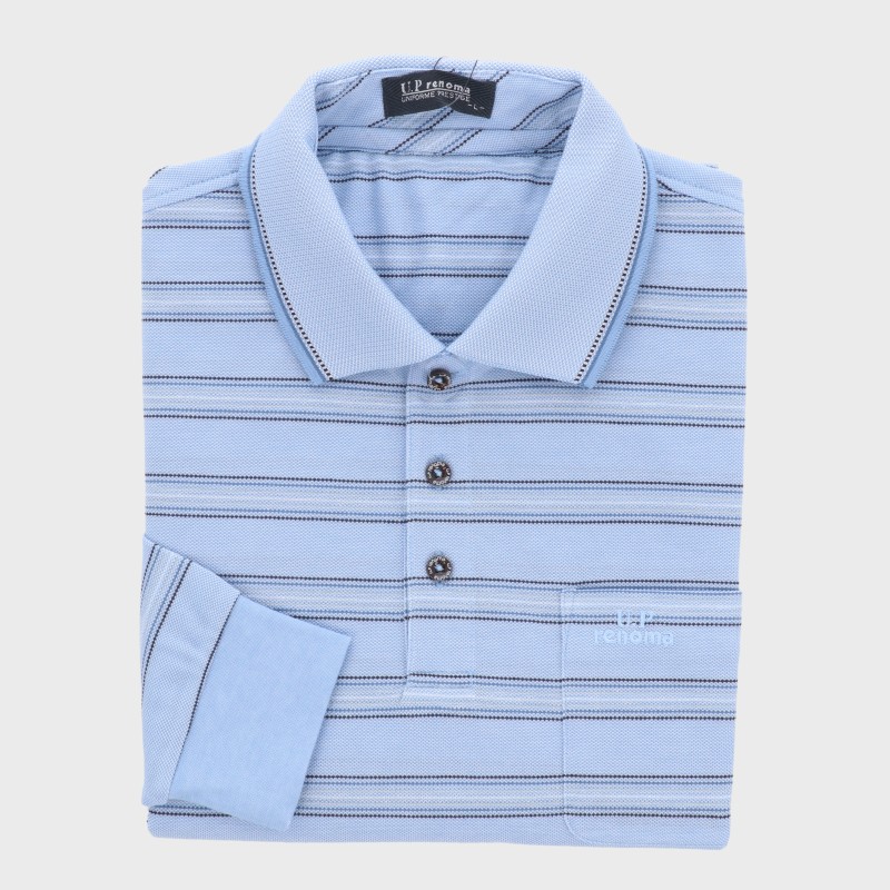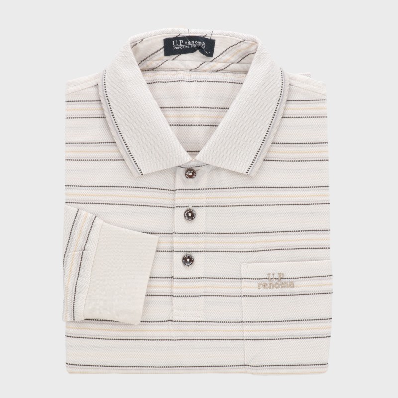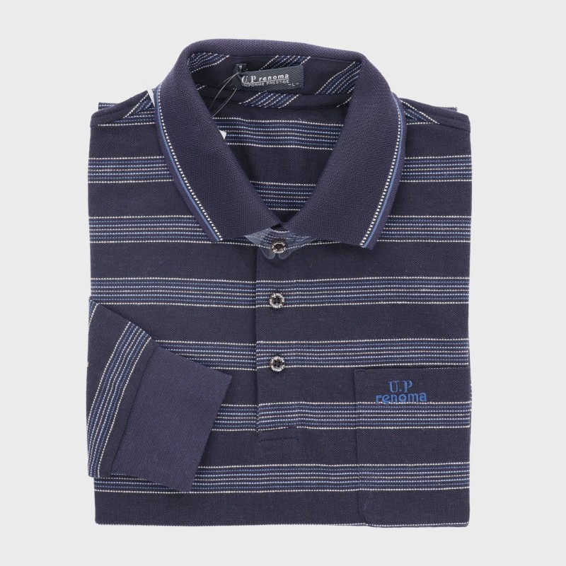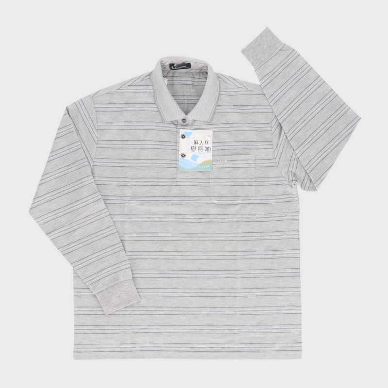 紳士夏長袖麻入りボーダー柄ポロシャツ『U.P renoma』