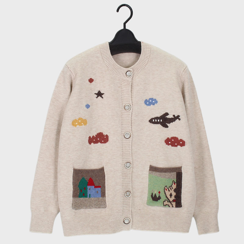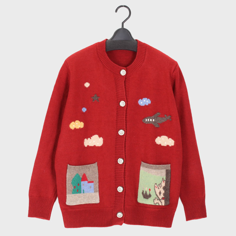 婦人丸首ニットカーディガン