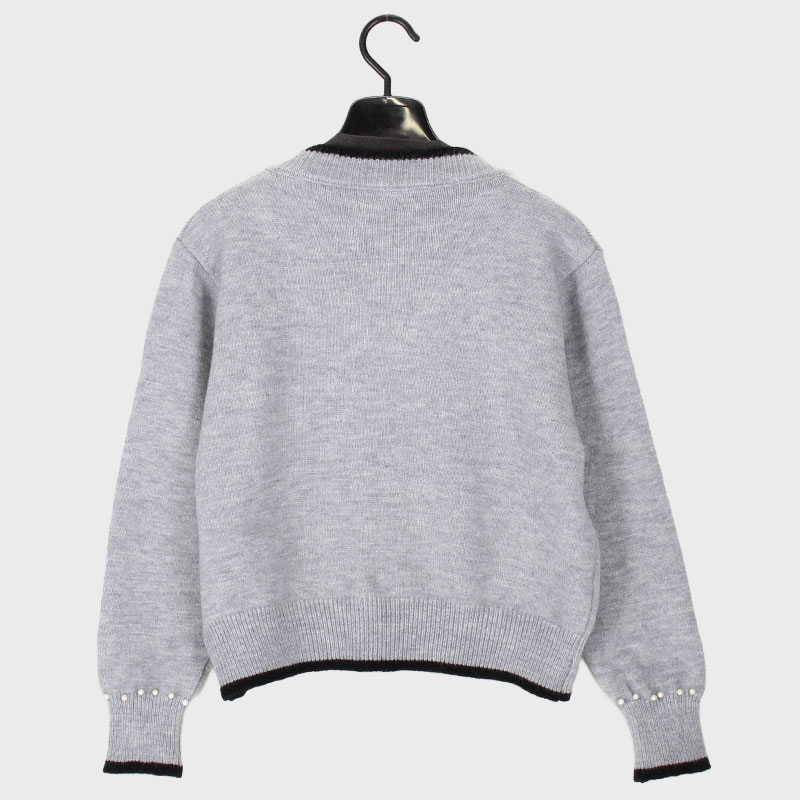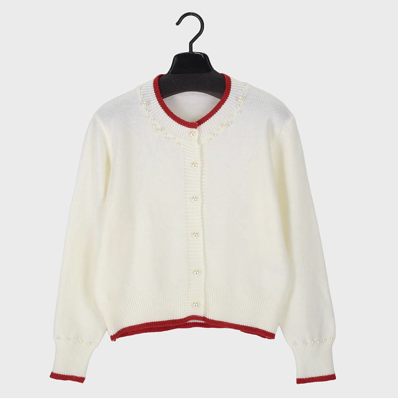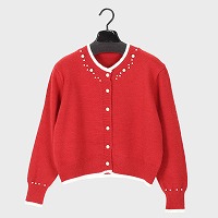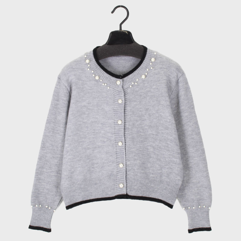 婦人丸首ニットカーディガン(パール付き)
