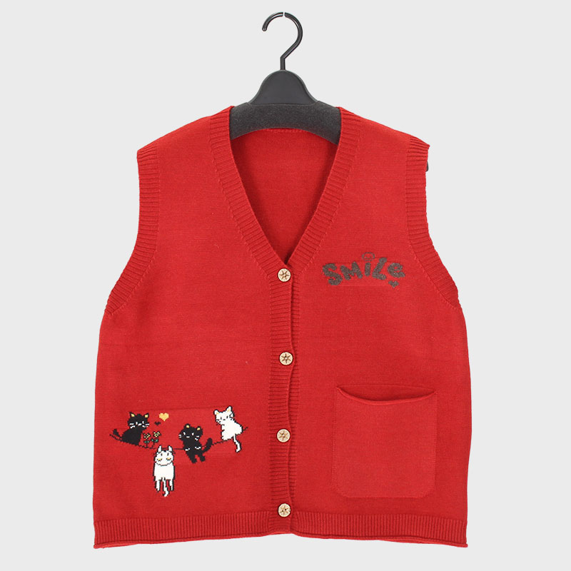 婦人V首ニットベスト(ネコ)