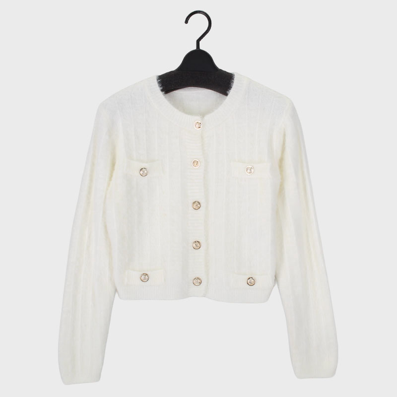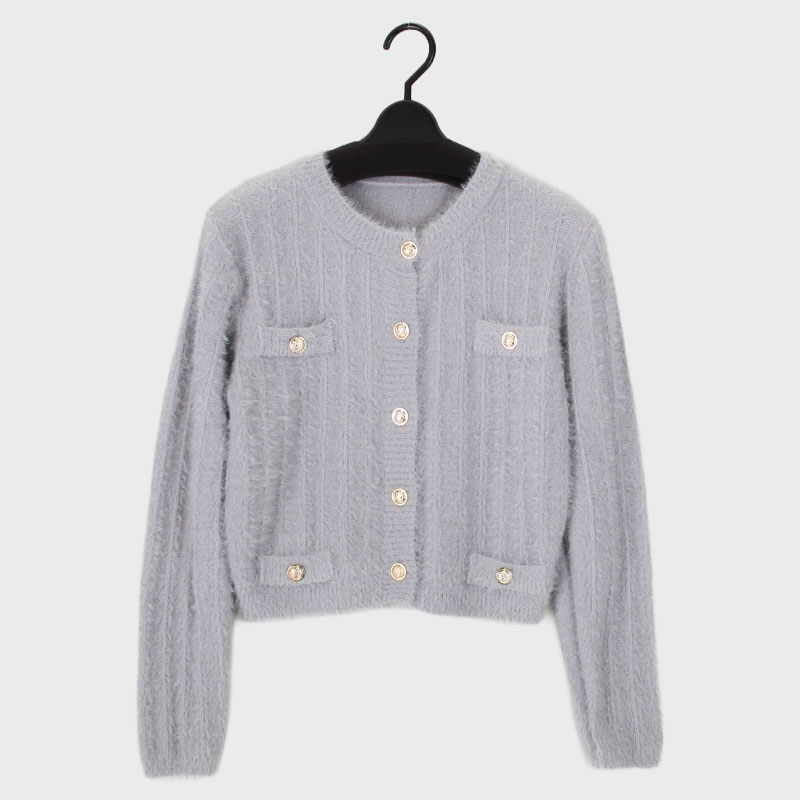 婦人丸首シャギーニットカーディガン(金ボタン)