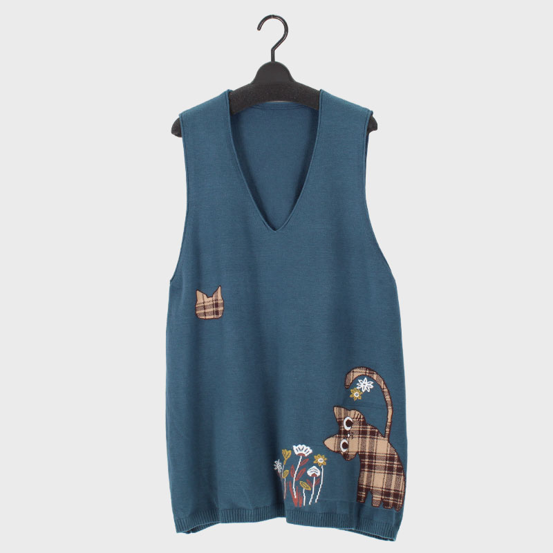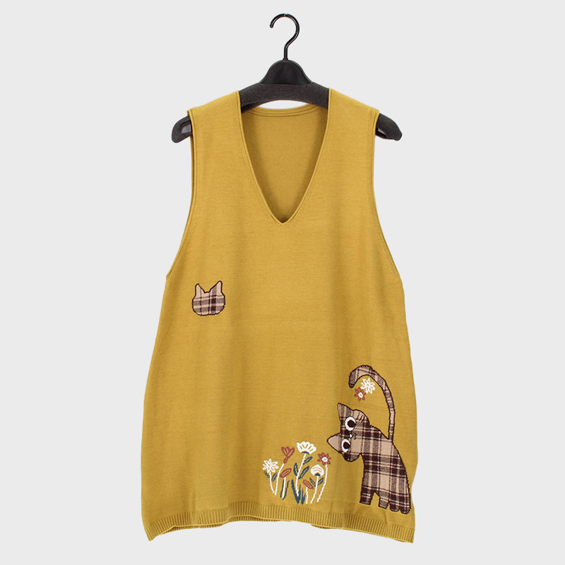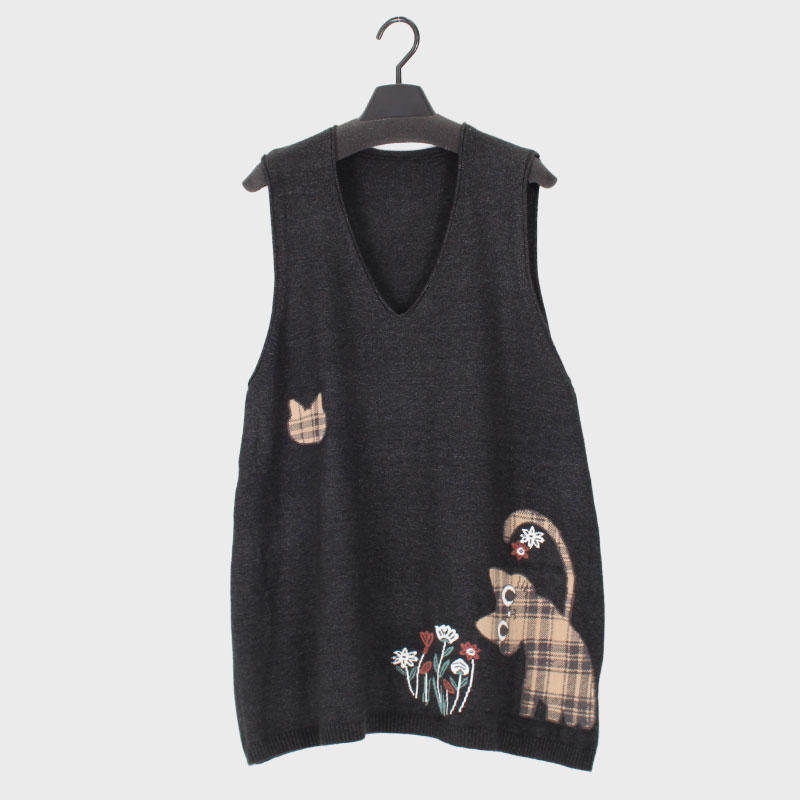 大西衣料(株)が運営する、【公式】卸・仕入れサイト『SELF WEB SHOP』で 婦人V首チュニックベスト(ネコ柄) をお仕入れ!