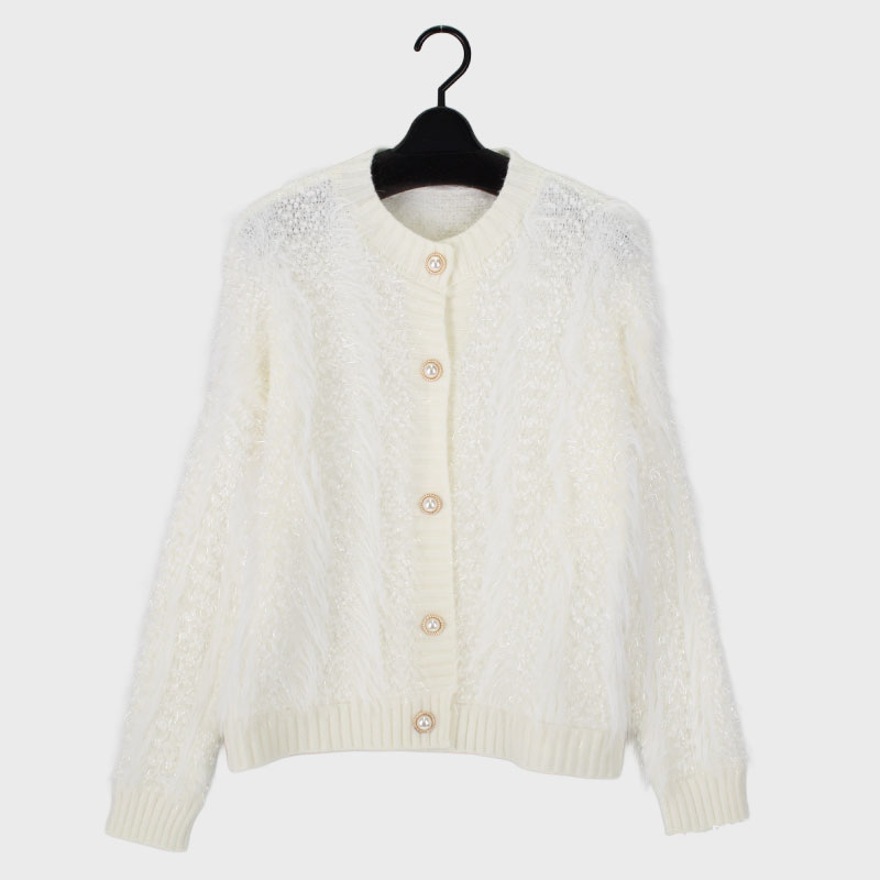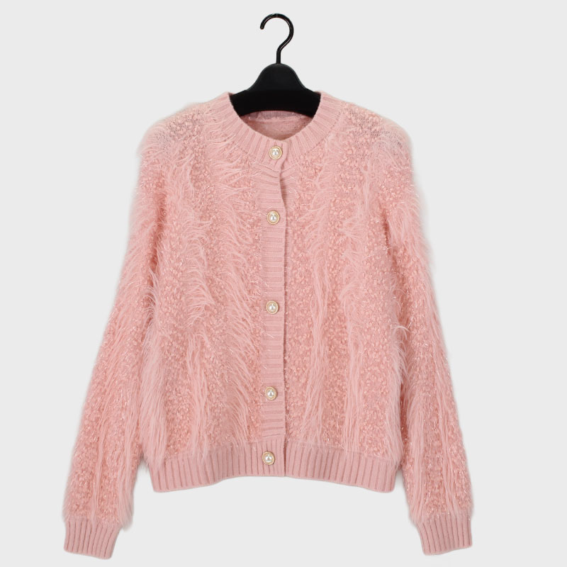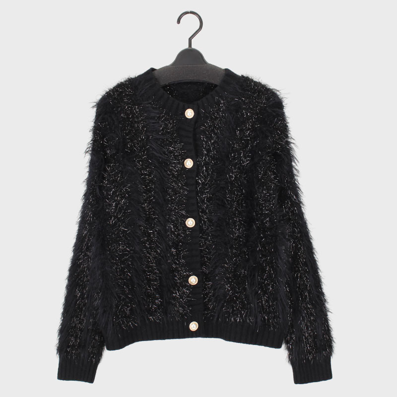 大西衣料(株)が運営する、【公式】卸・仕入れサイト『SELF WEB SHOP』で 婦人丸首ラメシャギーニットカーディガン をお仕入れ!