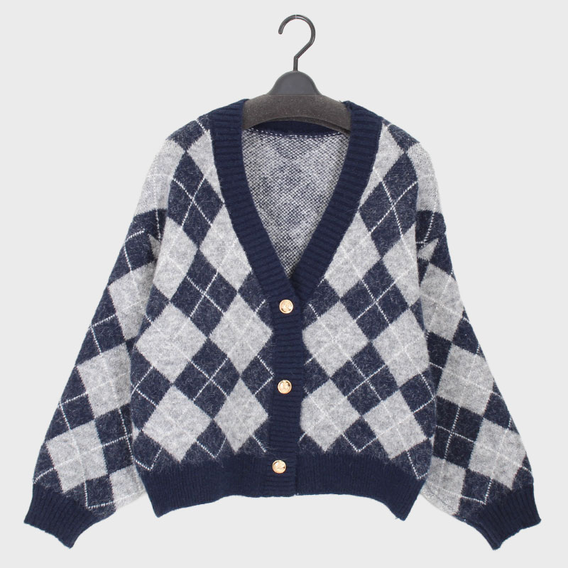 婦人X首アーガイル柄カーディガン
