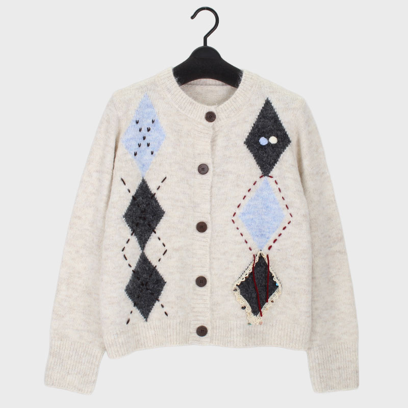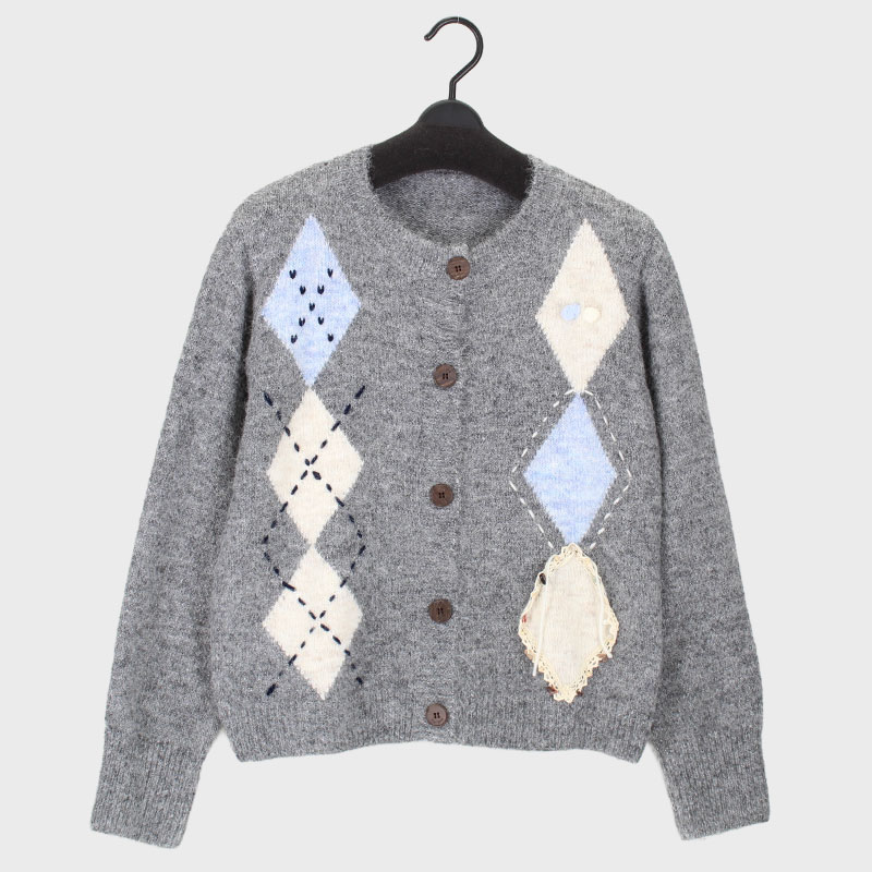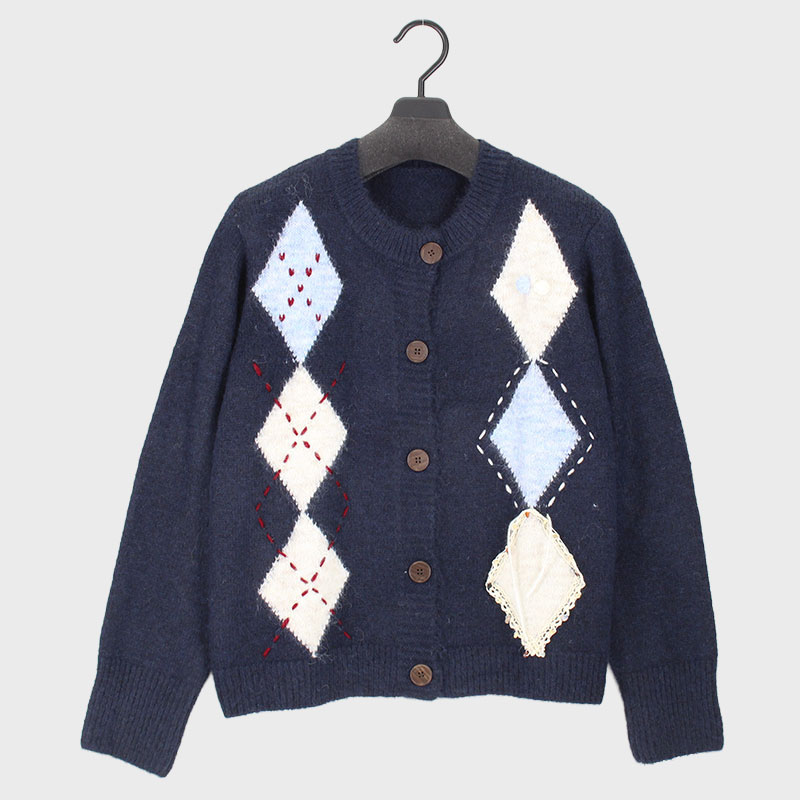 大西衣料(株)が運営する、【公式】卸・仕入れサイト『SELF WEB SHOP』で 婦人丸首アーガイル柄カーディガン をお仕入れ!