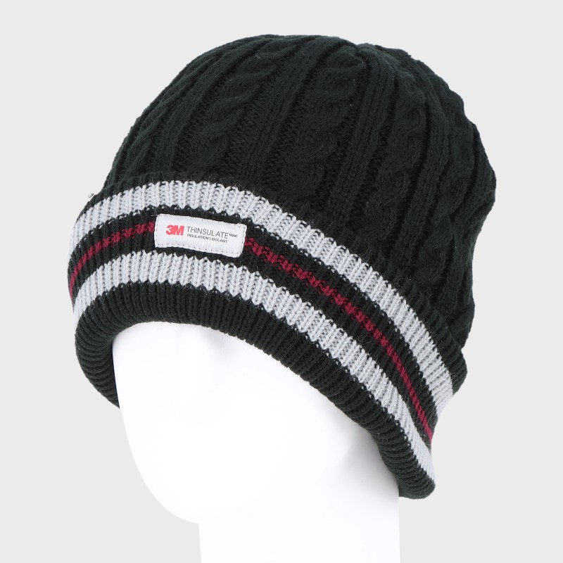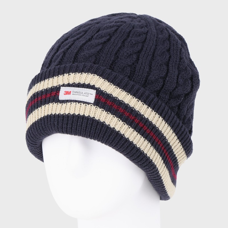 紳士『THINSULATE3M』ニット帽ライン入り縄編みワッチ/手洗可