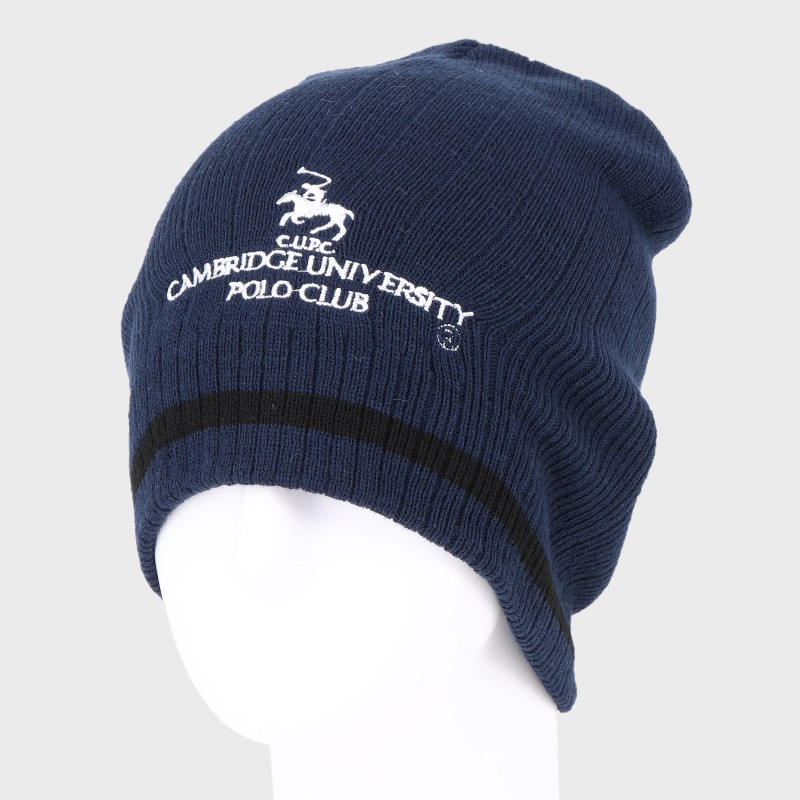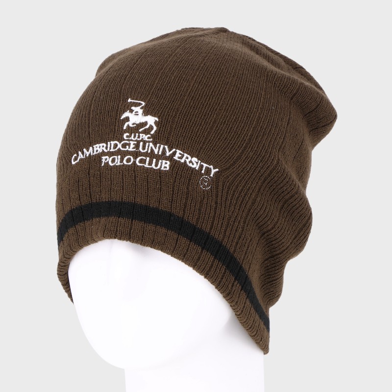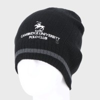 紳士『POLO CULB』ニット帽ロゴ入りリブ編みビーニー
