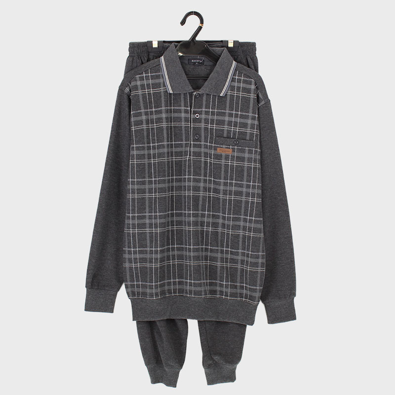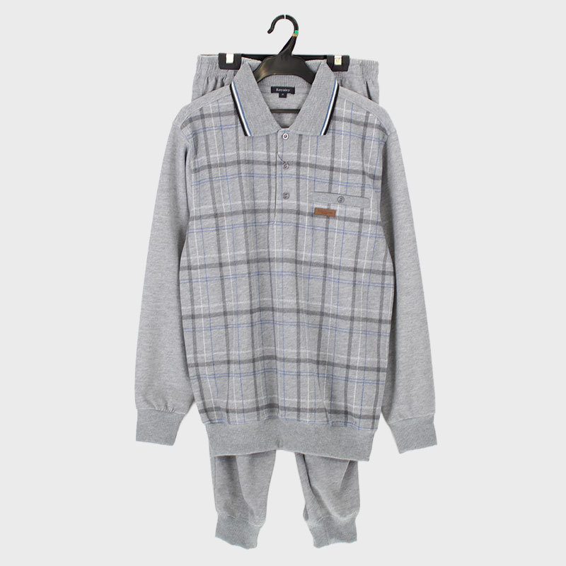 紳士長袖ダンボールポロ襟格子柄スーツ『Royalcy』