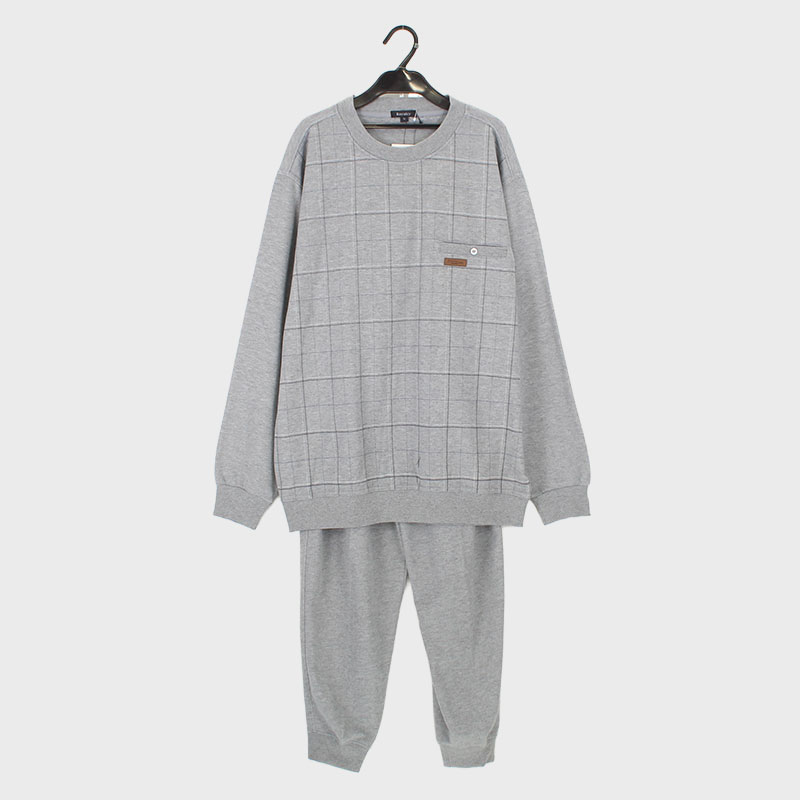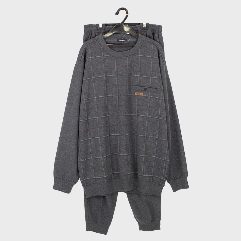 紳士大寸長袖ダンボール丸首格子柄スーツ『Royalcy』