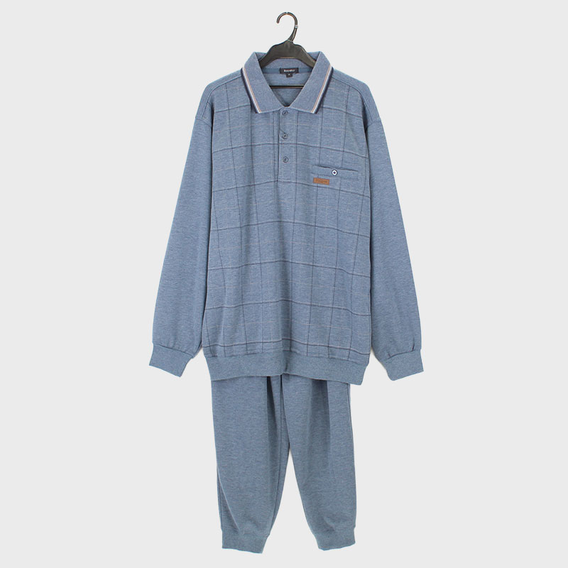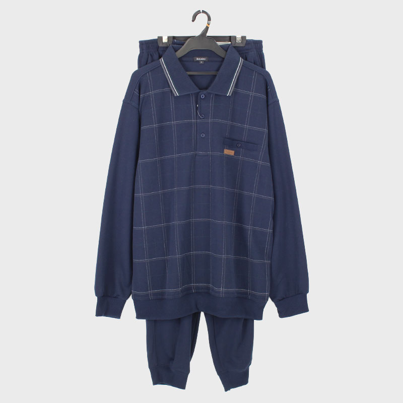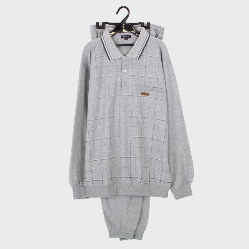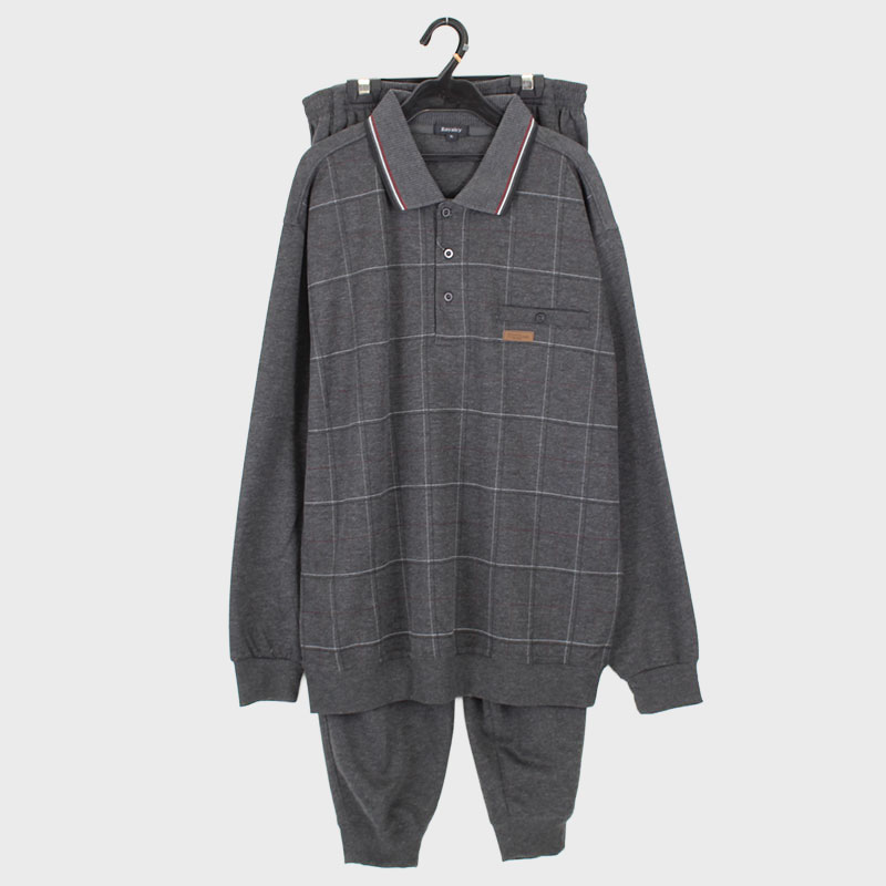紳士大寸長袖ダンボールポロ襟格子柄スーツ『Royalcy』