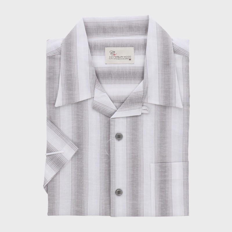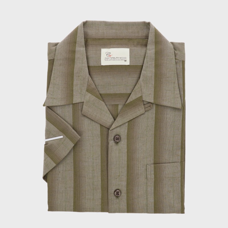 紳士半袖麻入り開襟ストライプシャツ『CANTERBURY WOOD』