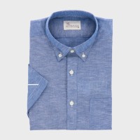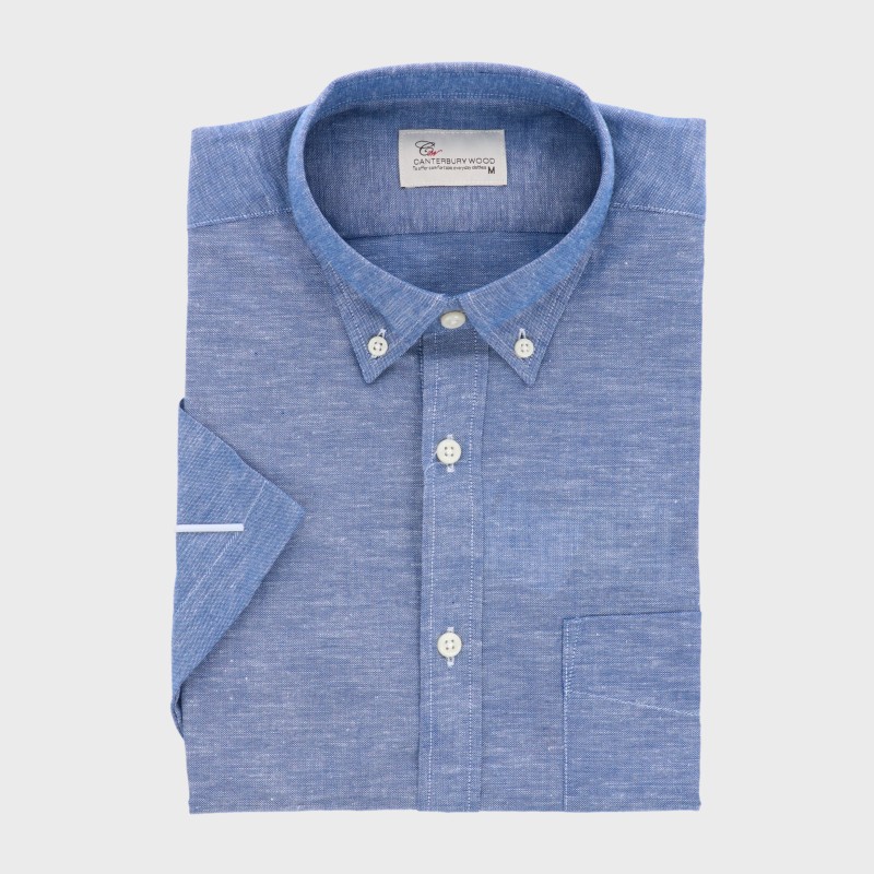 紳士半袖麻入りシャンブレー無地ボタンダウンシャツ『CANTERBURY WOOD』