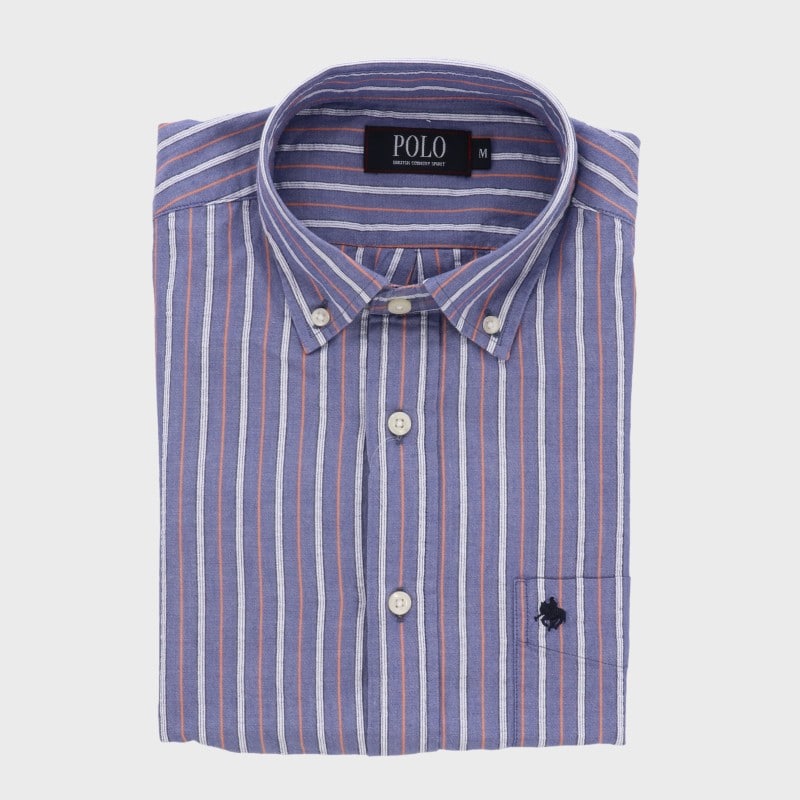 紳士7分袖シアサッカーストライプシャツ『POLO』