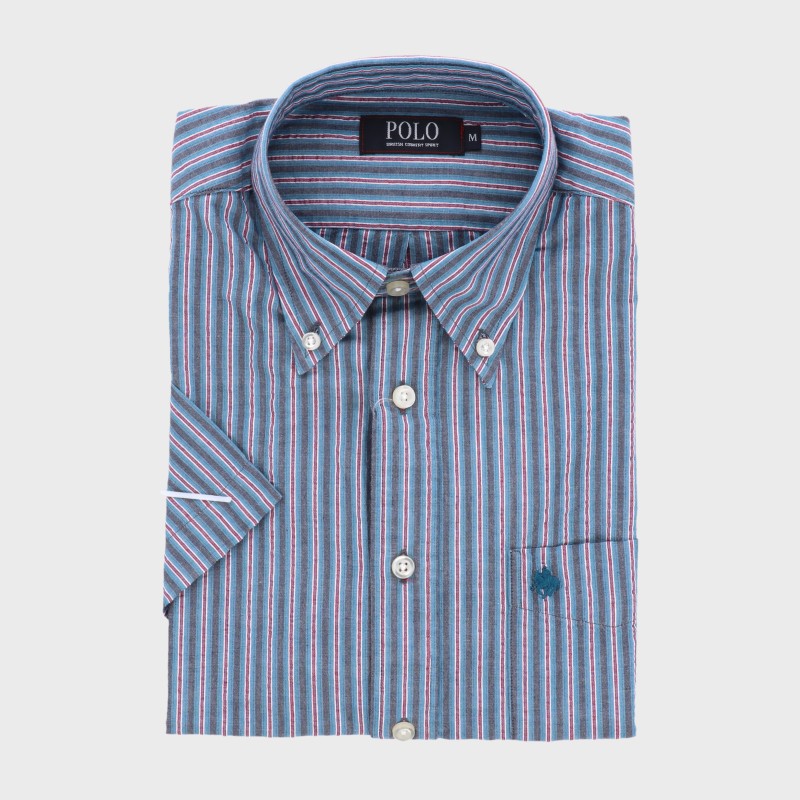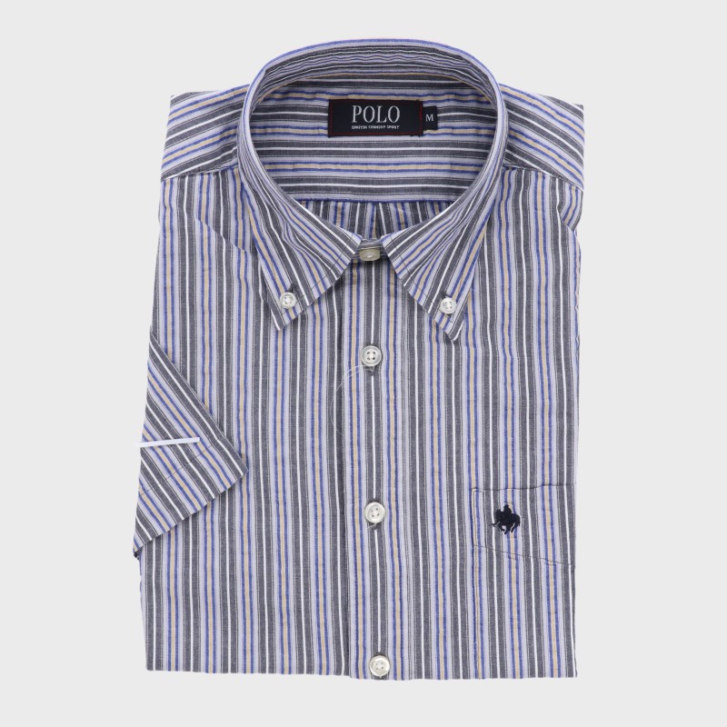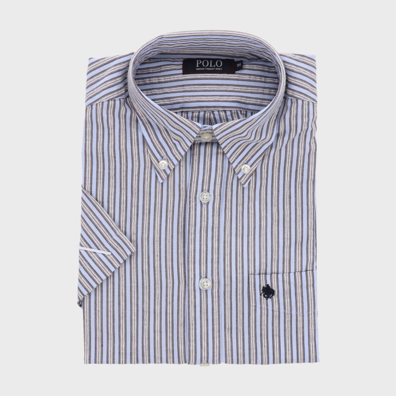 紳士半袖ストライプ柄ボタンダウンシャツ『POLO』
