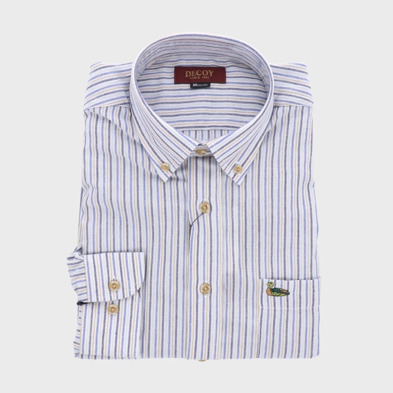 紳士夏長袖ストライプ柄ボタンダウンシャツ『DECOY』