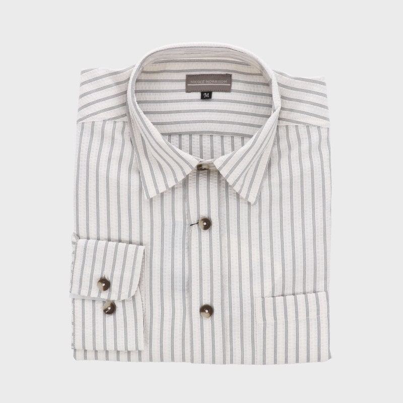 紳士夏長袖ストライプ柄シャツ『NICOLE MORRISON』