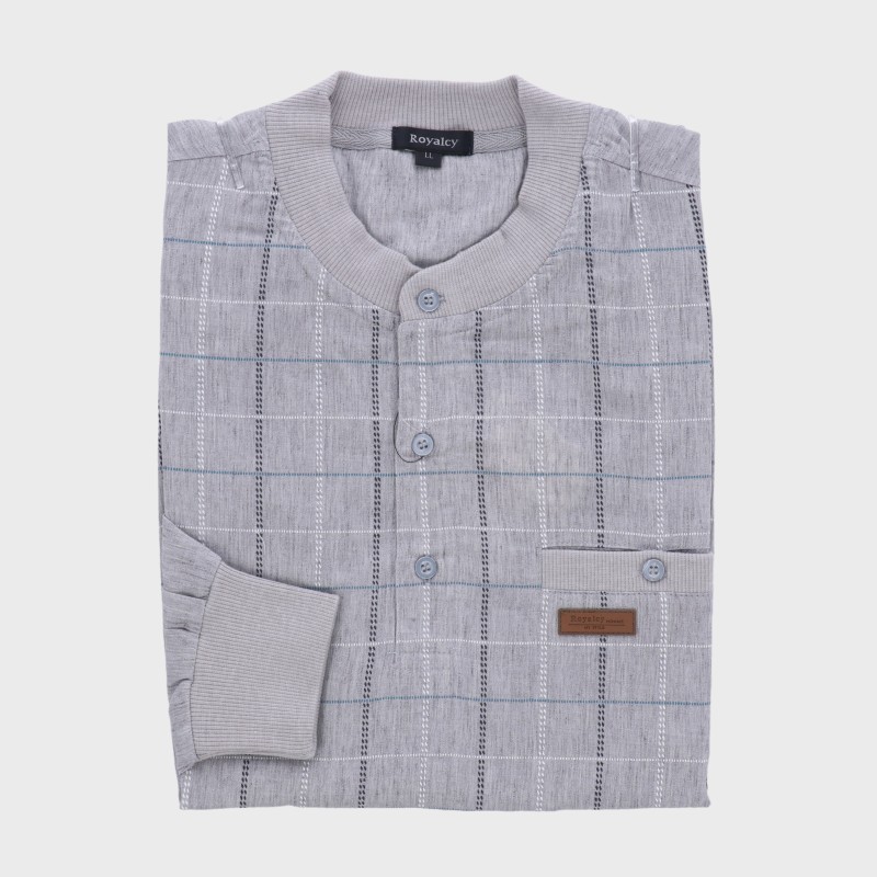 大西衣料(株)が運営する、【公式】卸・仕入れサイト『SELF WEB SHOP』で 紳士夏長袖麻混楊柳ヘンリーネックトレーナー『Royalcy』 をお仕入れ!
