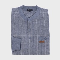 紳士夏長袖麻混楊柳ヘンリーネックトレーナー『Royalcy』