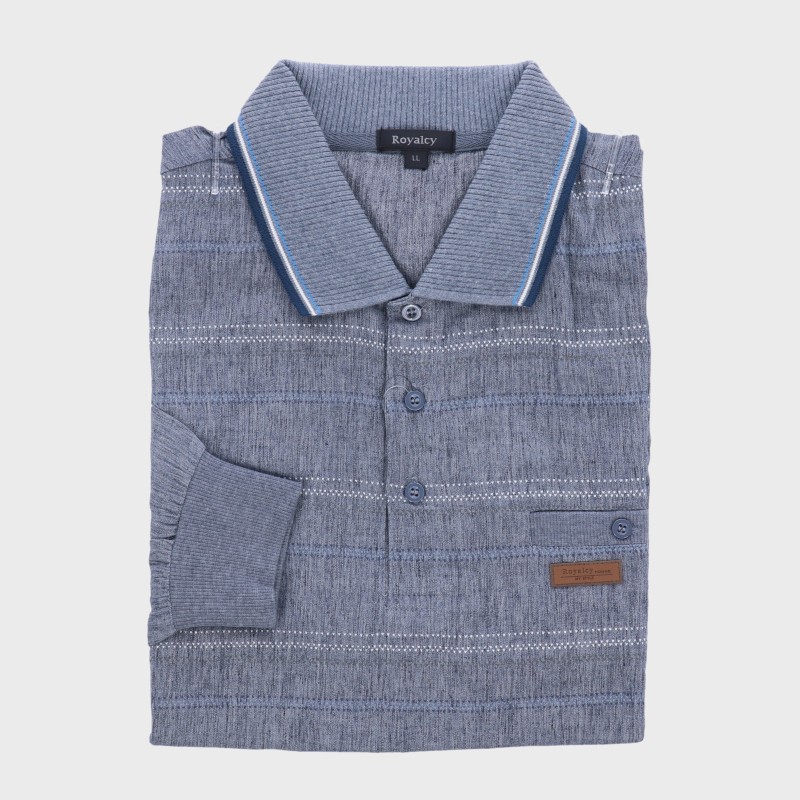 紳士夏長袖麻混楊柳ポロトレーナー『Royalcy』