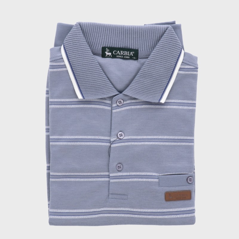 大西衣料(株)が運営する、【公式】卸・仕入れサイト『SELF WEB SHOP』で 紳士S寸ダンボールボーダーポロトレーナー『CARBIA』 をお仕入れ!