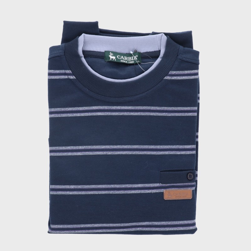大西衣料(株)が運営する、【公式】卸・仕入れサイト『SELF WEB SHOP』で 紳士S寸ダンボールボーダー丸首トレーナー『CARBIA』 をお仕入れ!
