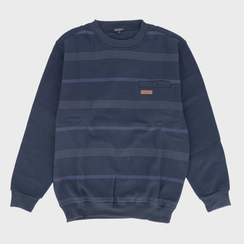 紳士大寸裏起毛丸首ボーダー柄トレーナー『ROYALCY』