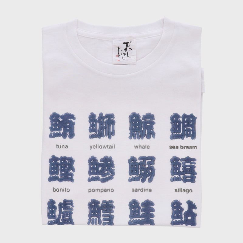 紳士日本製半袖立体プリントTシャツ(寿司漢字)『むかしむかし』