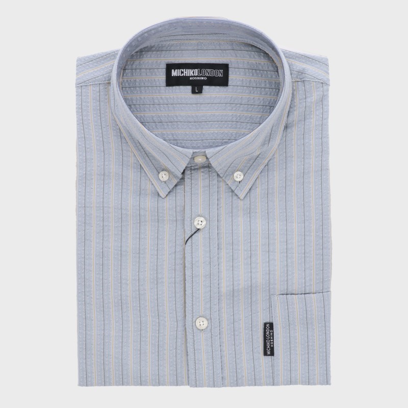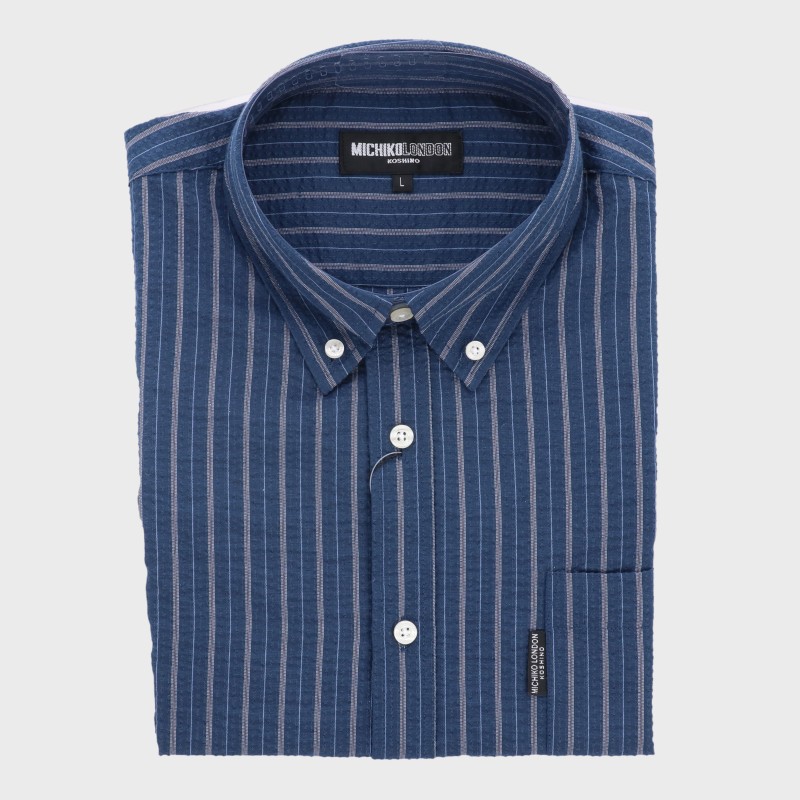 紳士長袖サッカー地ストライプシャツ『MICHIKO LONDON』