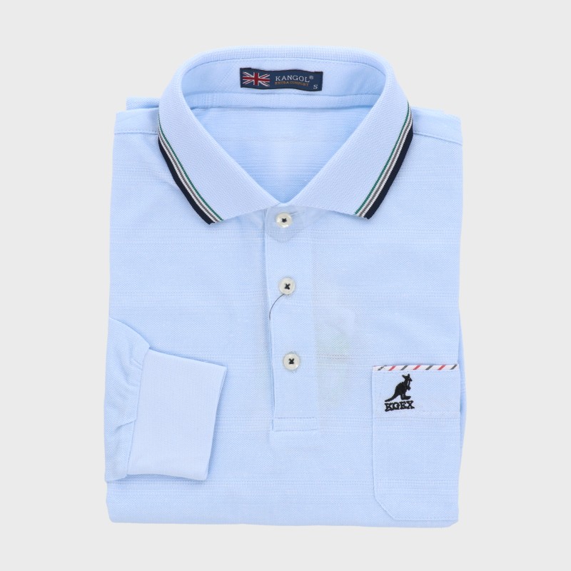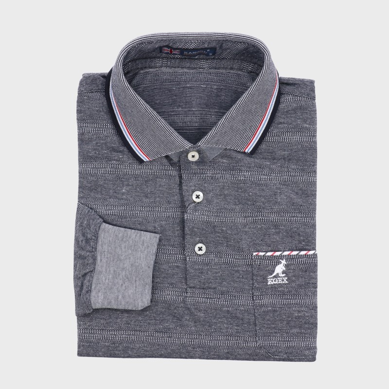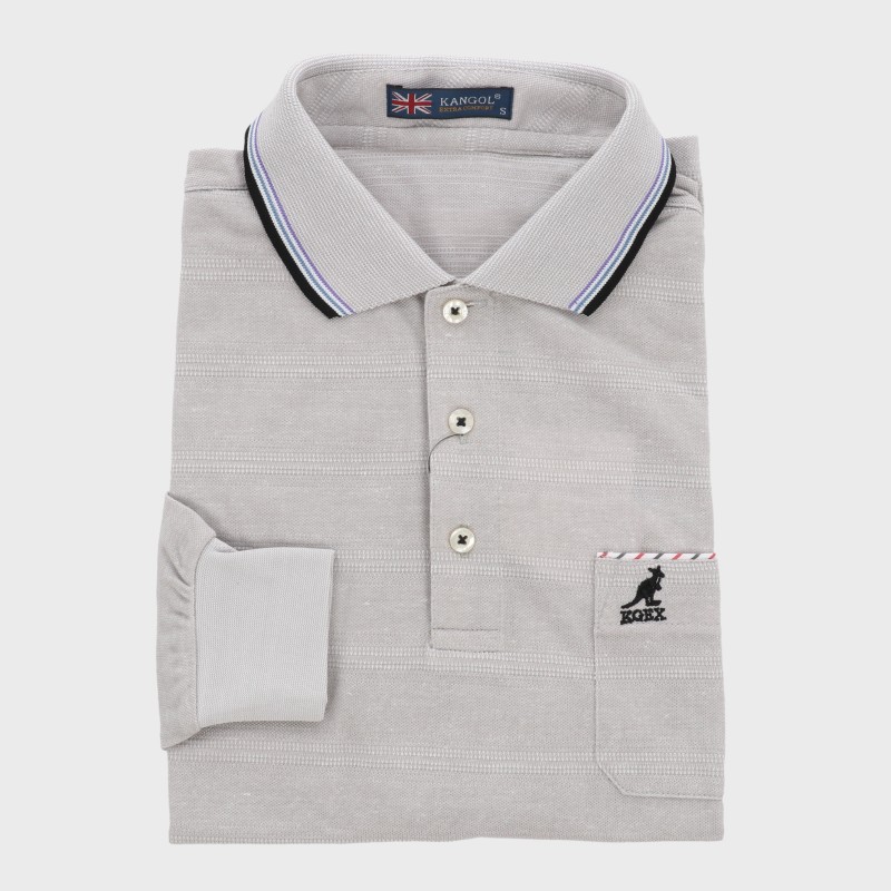 紳士夏長袖麻混ボーダー柄ポロシャツ『KANGOL』