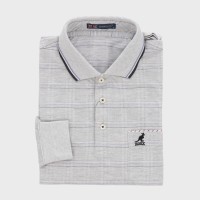 紳士夏長袖麻混格子柄ポロシャツ『KANGOL』