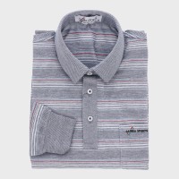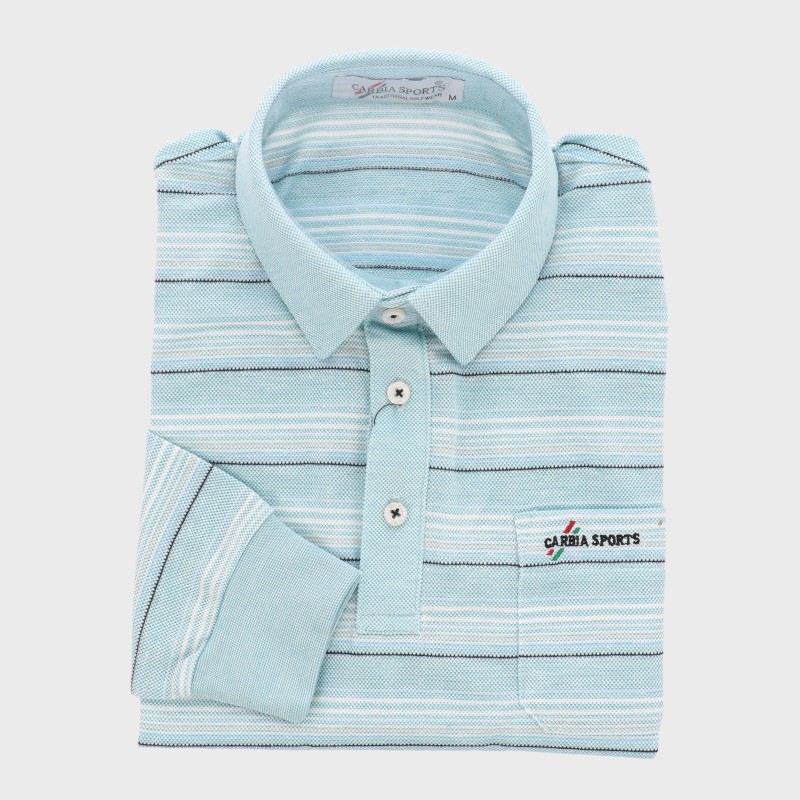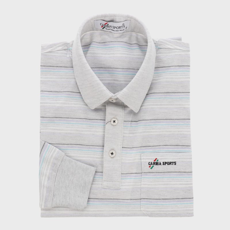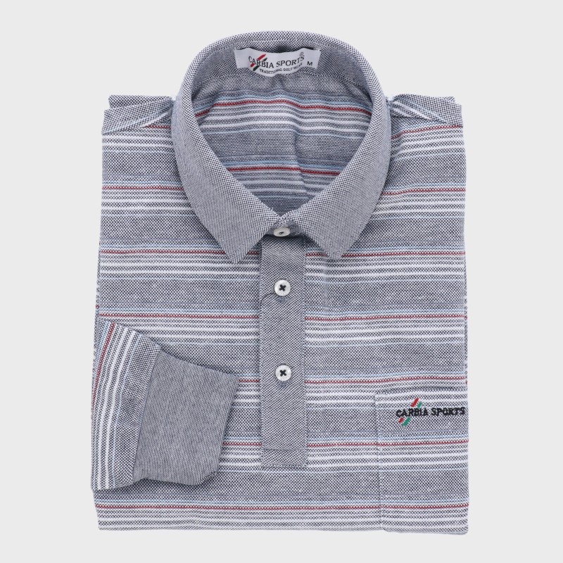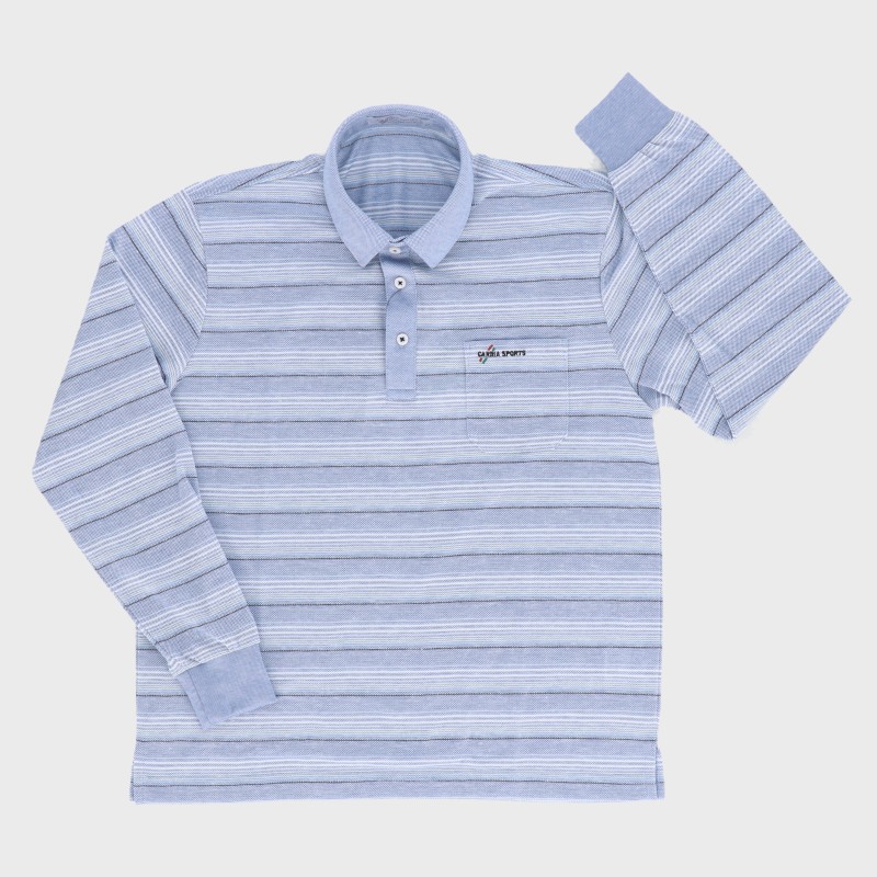 紳士夏長袖麻入りバーズアイボーダーシニアニットシャツ『CARBIA SPORTS』